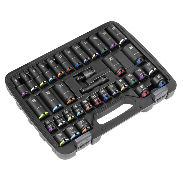 Lock-On™ Standard & Deep Impact Socket Set 34pc 1/2"Sq Drive 6pt Metric [AK5636M]